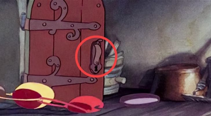 Gdy okazuje się, że w domu krasnali jest niespodziewany gość, Gapcio ściąga klamkę z drzwi, próbując uciec. Chwilę później klamka jest naprawiona.