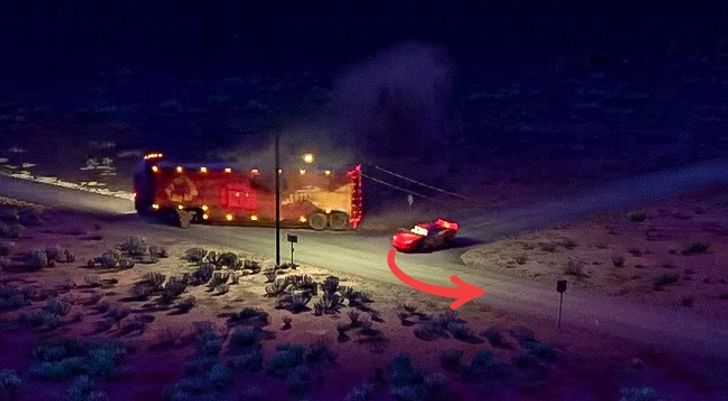 W jednej ze scen Zygzak McQueen widziany jest za Jackiem, gdy skręca w lewo na asfaltowej drodze. Sekundę później McQueen skręca w lewo na drodze polnej.