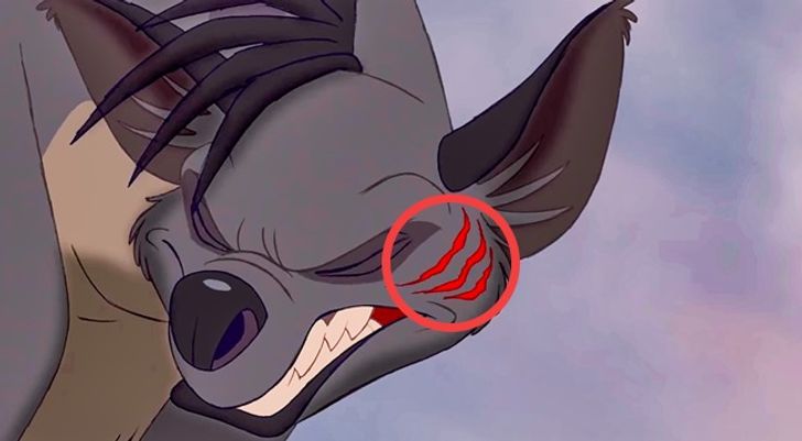 Kiedy młody Simba i Nala są ścigani przez hieny, jednej z nich magicznie znika rana na twarzy, która została jej zadana w poprzedniej scenie.