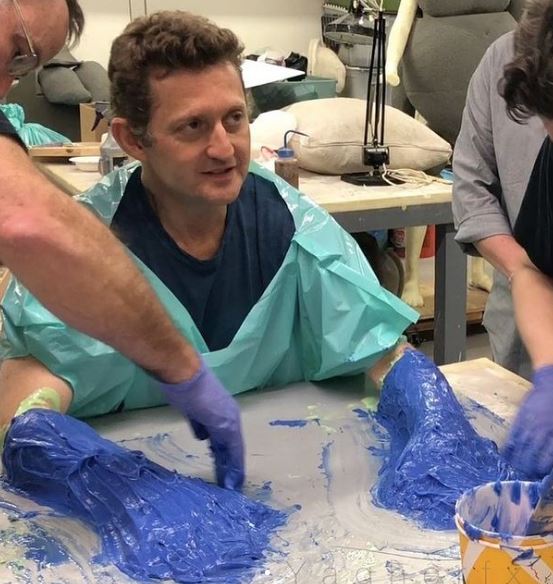 Keanu Reeves robi gipsowy odlew swoich rąk do filmu „Bill i Ted ratują wszechświat”.