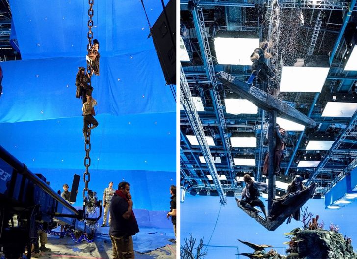 Podczas kręcenia piątej części „Piratów z Karaibów” aktorzy musieli zwisać z gigantycznego łańcucha.