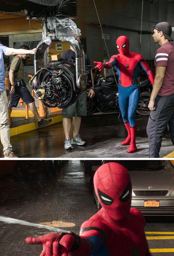 5. Zobaczcie, jak kręcono niektóre sceny puszczania pajęczyny przez Toma Hollanda w filmie „Spider-Man: Homecoming”.