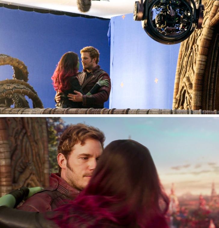 10. Tak nakręcono jeden z najbardziej romantycznych momentów filmu „Strażnicy Galaktyki vol. 2”.
