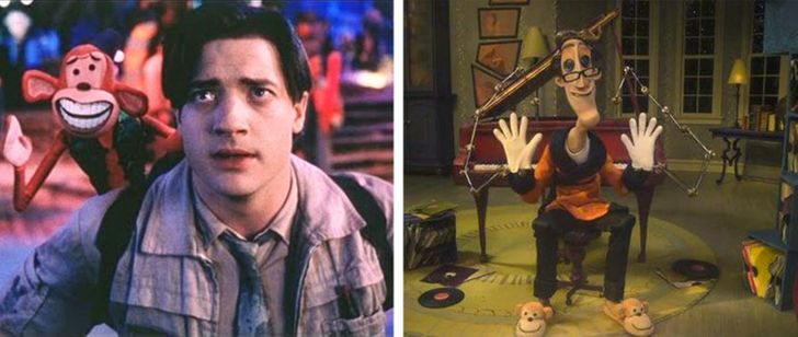 W bajce „Koralina i tajemnicze drzwi” (2009) drugi ojciec ma na sobie kapcie z małpami. „Małpiszon” natomiast to film komediowy z 2001 roku w reżyserii Henry’ego Selnicka, który wyreżyserował również „Koralinę”.