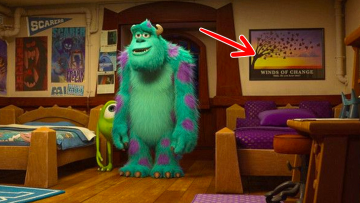 W „Uniwersytecie potwornym” można zobaczyć plakat z inspirującymi słowami: „Winds of change” (ang. „wiatry zmian”). Randall najwyraźniej musiał wziąć sobie tę mantrę do serca, bo w filmie „Potwory i spółka” mówi do Sully’ego: „Słyszysz to? To wiatry zmian!”.