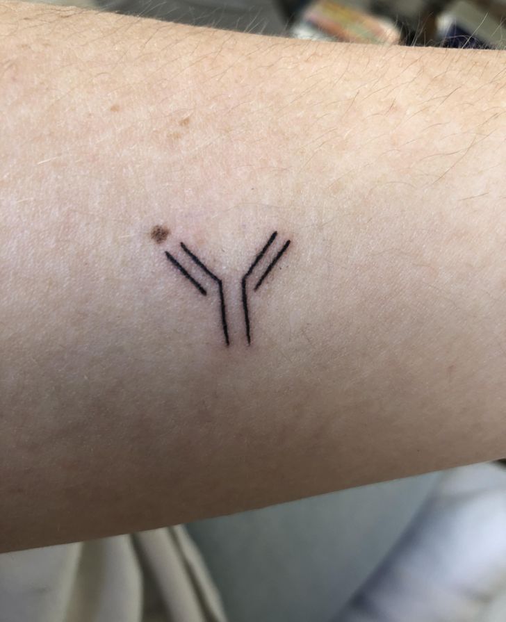 6. „Właśnie obroniłem doktorat na temat przeciwciał i pomyślałem, że powinienem uczcić to małym tatuażem… oczywiście z przeciwciałami.”