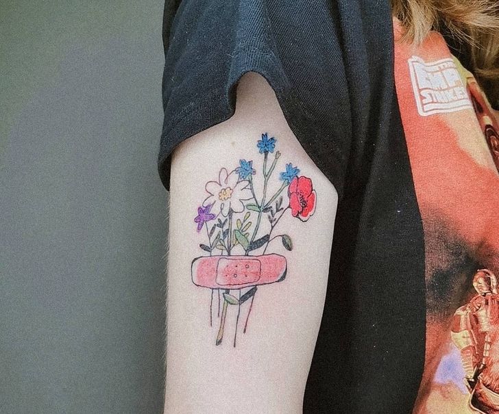 13. „Bliznę przykryliśmy plastrem, a żeby było jeszcze bardziej uroczo, przyczepiliśmy do niego kwiaty.”