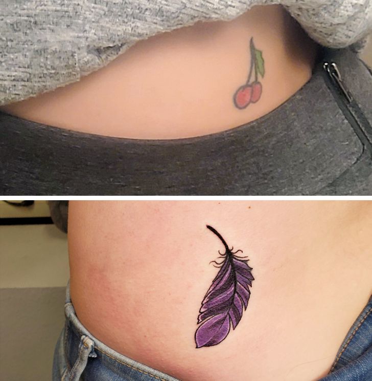 10. „Zrobiłam sobie niesamowity cover mojego starego tatuażu z wisienką. Moja zmarła najlepsza przyjaciółka nazywała mnie 'Piórko’, więc to naprawdę bardzo wiele dla mnie znaczy”.