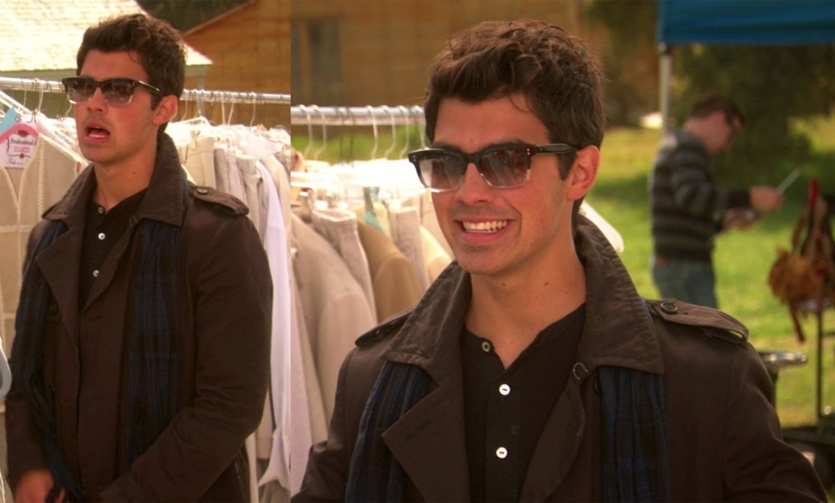 W tej scenie z „Jonas w Los Angeles” Joe niby jest na planie filmowym, ale wygląda, jakby był w drodze na Comic Con. Nie zrozumcie nas źle, uwielbiamy Davida Tennanta w „Doktorze Who”, ale wygląd brytyjskiego kosmity podróżującego w czasie nie pasuje do gwiazdy rocka.