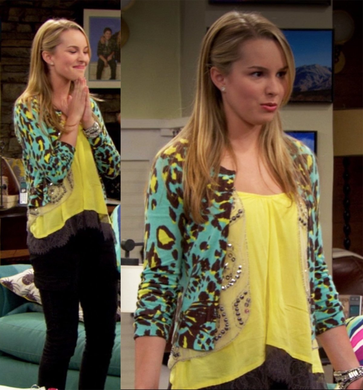 Wygląda na to, że wszystkie ubrania Sonny zostały zakupione na jakiejś wielkiej wyprzedaży. Jeśli już musiała nosić cekinowy kardigan, mogła przynajmniej dobrze go zapiąć.