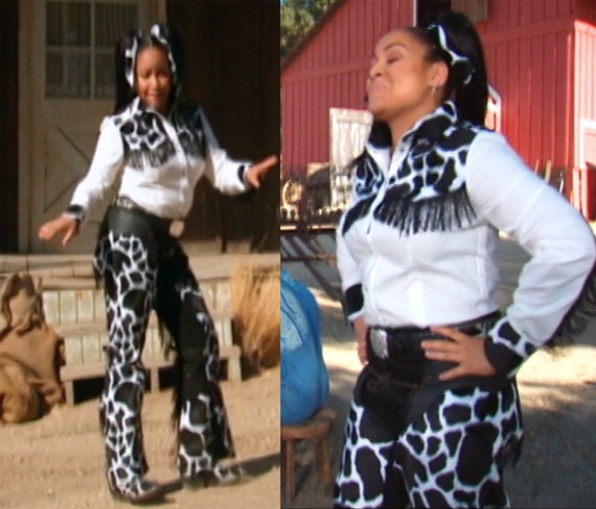 Wstążki na włosach i westernowa koszula są w pewnym sensie zrozumiałe, ale absolutnie nie podoba nam się ten wszechobecny krowi nadruk.