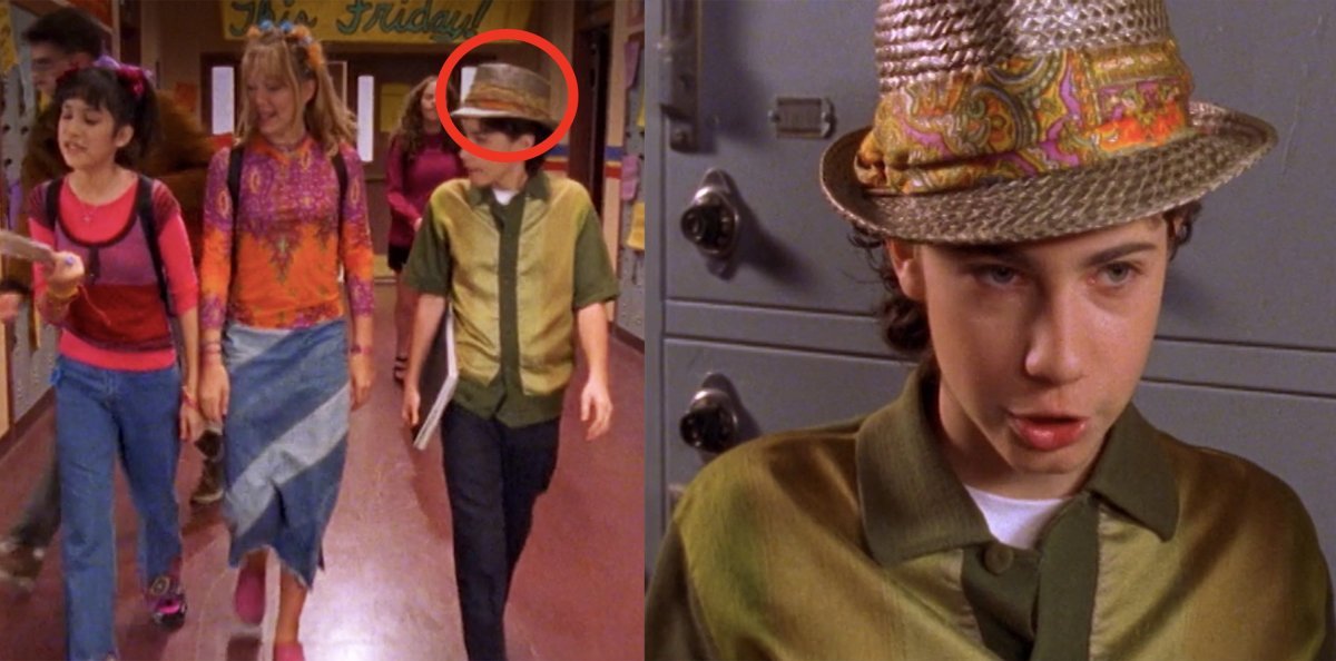 W tej scenie z serialu „Lizzie McGuire” Lizzie i Miranda wytykają Gordo wszystko, co je denerwuje, ale jakoś umknął im ten kapelusz. Czyżby zawarły sekretny pakt, że nie będą zwracać uwagi na słomkowego potwora, którego Gordo zakupił podczas rejsu?