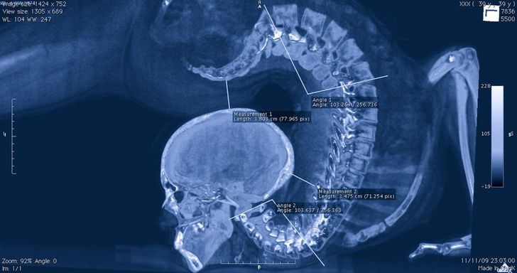 Szkielet człowieka o bardzo gibkim ciele w nienaturalnej pozycji.