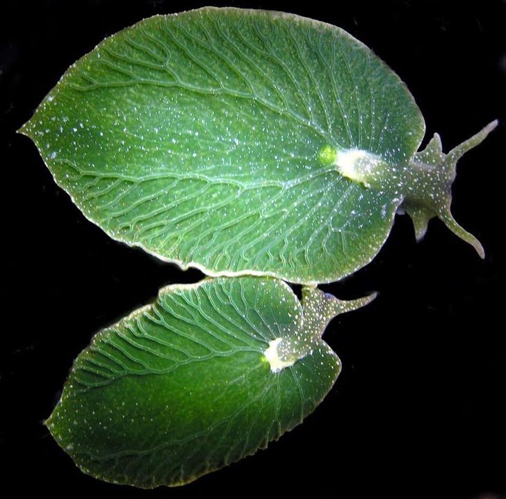 Ten ślimak morski, który wygląda jak liść, może nie jeść przez 9 miesięcy, ponieważ potrafi fotosyntetyzować tak jak roślina, wygrzewając się w słońcu!