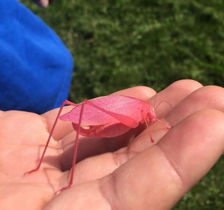 „Podczas koszenia trawnika znalazłem tego różowego konika polnego.”