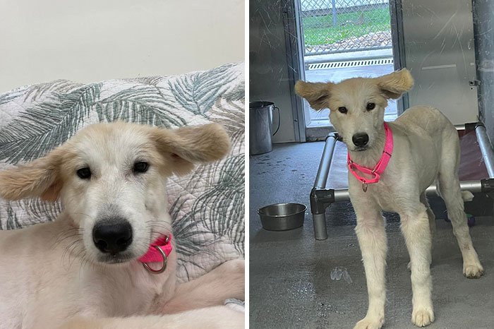 21. Uratowany psiak o niecodziennych uszach.
