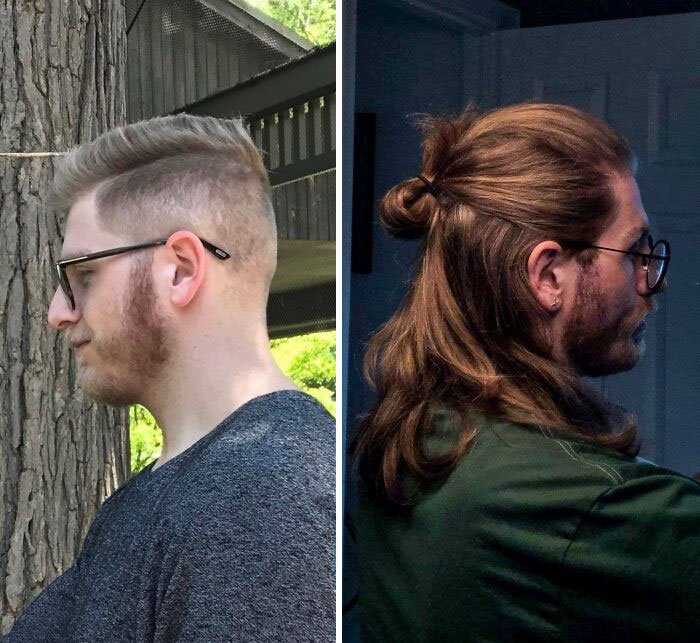 46. „Pandemia dała mi powód, aby w końcu spróbować zapuścić włosy, to jest około 7,5 miesiąca.”