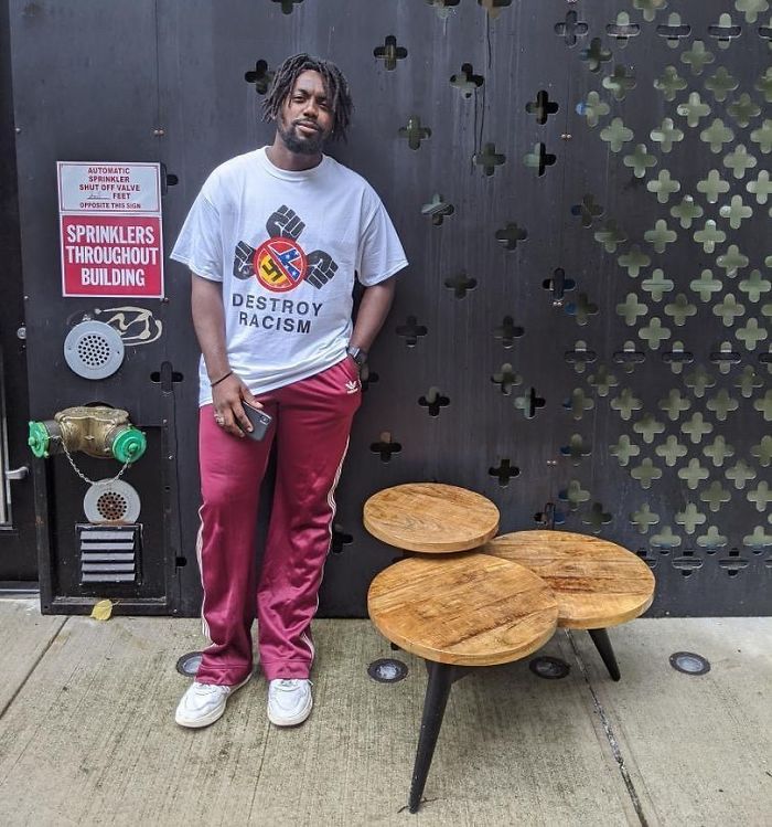 10. Niesamowity wielopoziomowy stolik kawowy, a obok dobry człowiek ze słusznym napisem na koszulce. Stop rasizmowi!