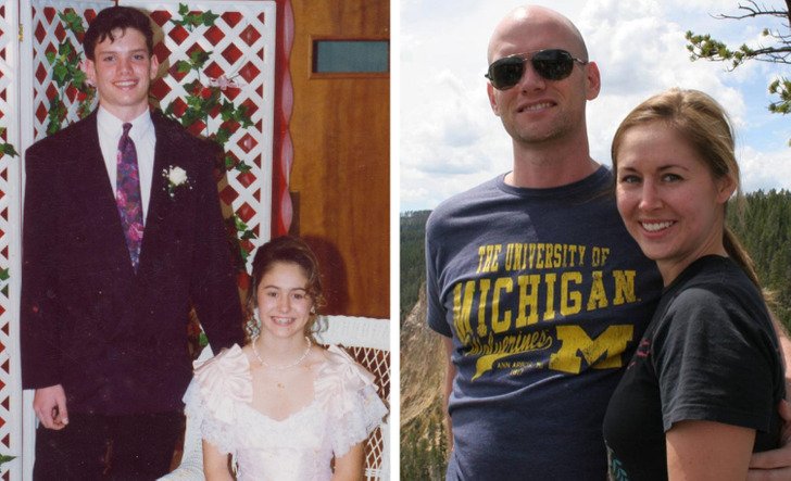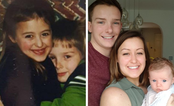 2. „Moja dziewczyna, teraz żona, i ja w wieku 6 lat i 26 lat. Bonus: nasza 9-tygodniowa córeczka”.