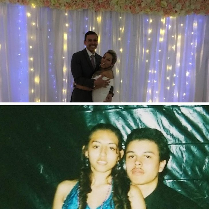 1. „Ja i moja ówczesna dziewczyna, obecnie żona, 8 lat razem. Pierwszy rok naszego związku i dzień ślubu”.