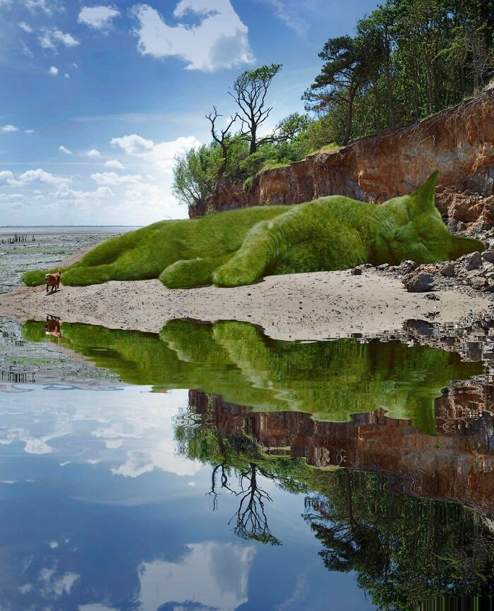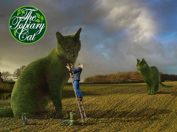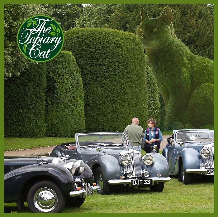 Wielu z nas zna to uczucie, kiedy strasznie tęsknimy za zwierzakami, które kiedyś mieliśmy – ba, niektórzy nawet robią sobie tatuaże z ich wizerunkiem! 75-letni Richard Saunders przeniósł to jednak na zupełnie nowy poziom. Artysta postanowił wyrazić miłość do swojego kota, który zmarł 5 lat wcześniej, tworząc niezwykle zaskakujące surrealistyczne… krzewy w kształcie jego uroczego kota Tolly.