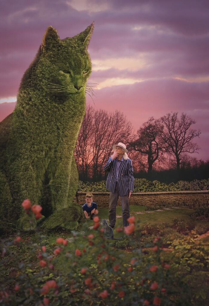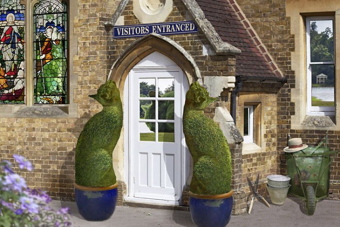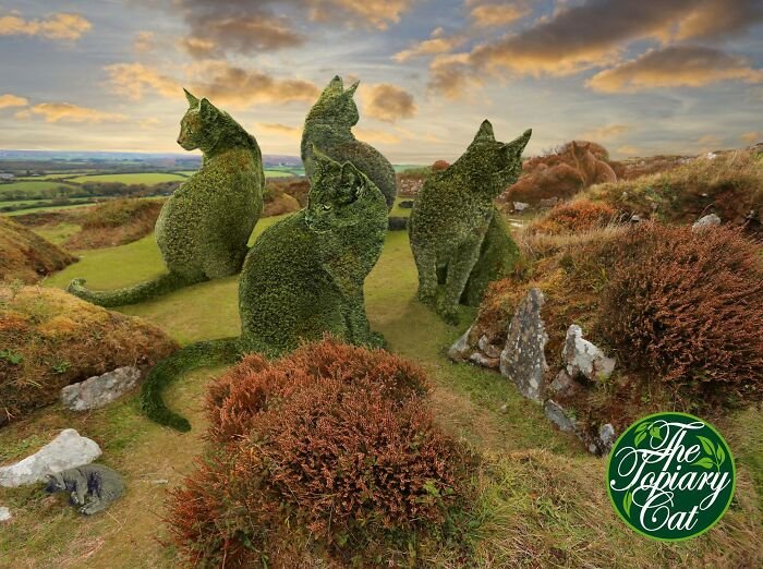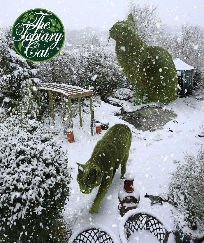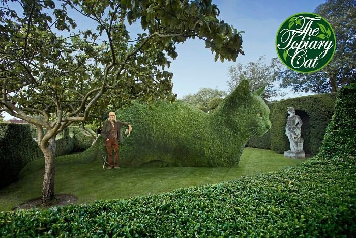 You are currently viewing 75-letni artysta tworzy oryginalne posągi z krzewów na cześć swojego zmarłego kota