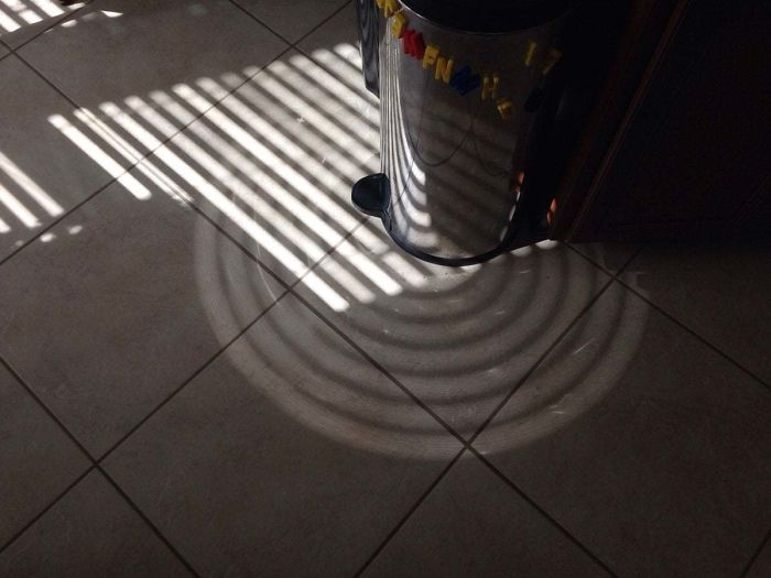 32. Właśnie to się dzieje, gdy światło przechodzi przez żaluzje i trafia w kosz na śmieci: