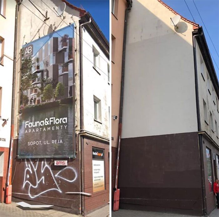 Są jednak także dobre wiadomości na tym froncie! Polskie miasto portowe Gdańsk (wraz z innymi miastami, w tym Warszawą) wygrywa walkę z chaotycznymi reklamami, które zagracają przestrzeń publiczną, a wszystko to dzięki lokalnej i krajowej wersji ustawy o ochronie krajobrazu. Ma ona bezpośredni wpływ na wygląd miasta i musimy przyznać, że widać wyraźną poprawę, która pomaga przypomnieć sobie, jak miasto wyglądałoby „na wolności”. Już setki budynków po usunięciu reklam pokazują swoje fasady dumnie i bez ograniczeń. Przed Wami galeria zdjęć prezentująca efekty tej akcji – jako Polacy możemy być dumni z takich inicjatyw!