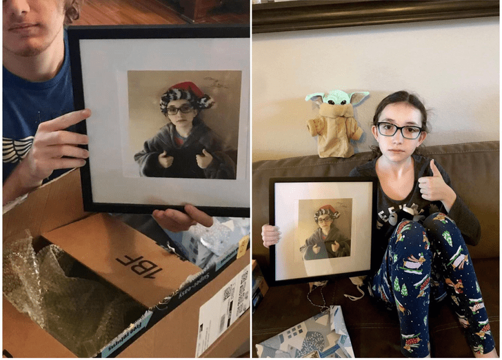 5. Dzięki sztucznym zębom i okularom szkolne zdjęcie stało się bezcenną pamiątką.