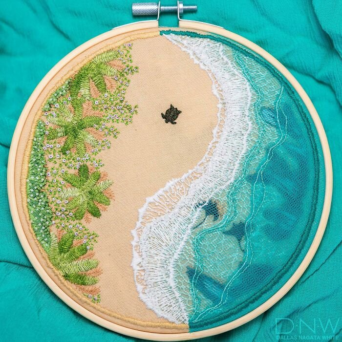 9. „Jestem dumna, że mogę podzielić się moimi postępami w haftowaniu od 2014 roku. Nie ma tu talentu, tylko godziny ćwiczeń i ciężkiej pracy!”