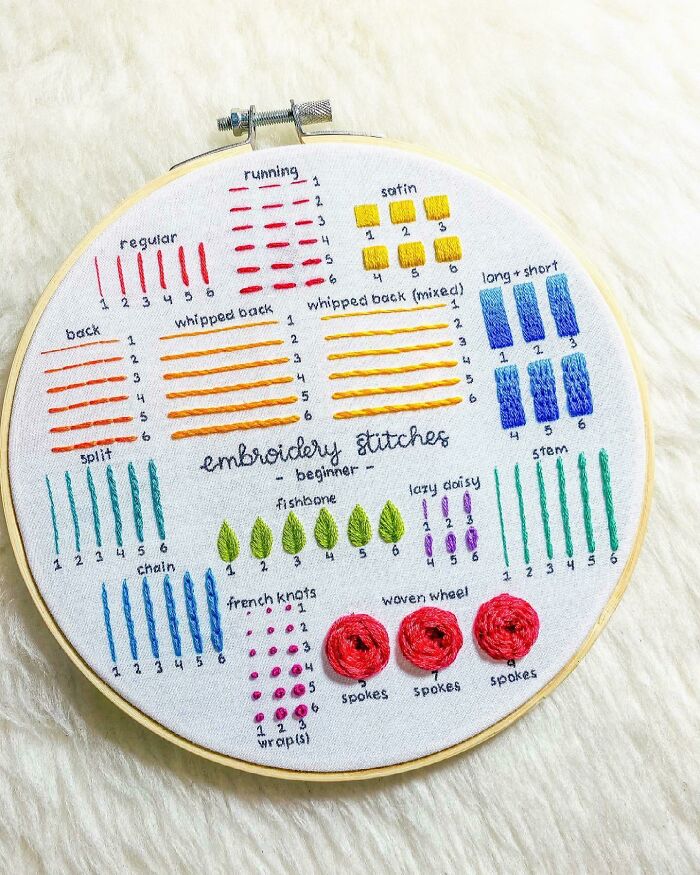8. „Zrobiłam małą ściągawkę dla moich przyszłych projektów hafciarskich. Nie muszę już zgadywać, ile nitek powinnam użyć, a później żałować złych obliczeń.”