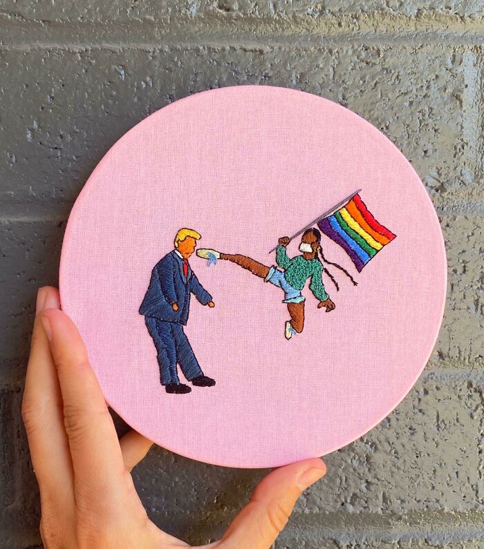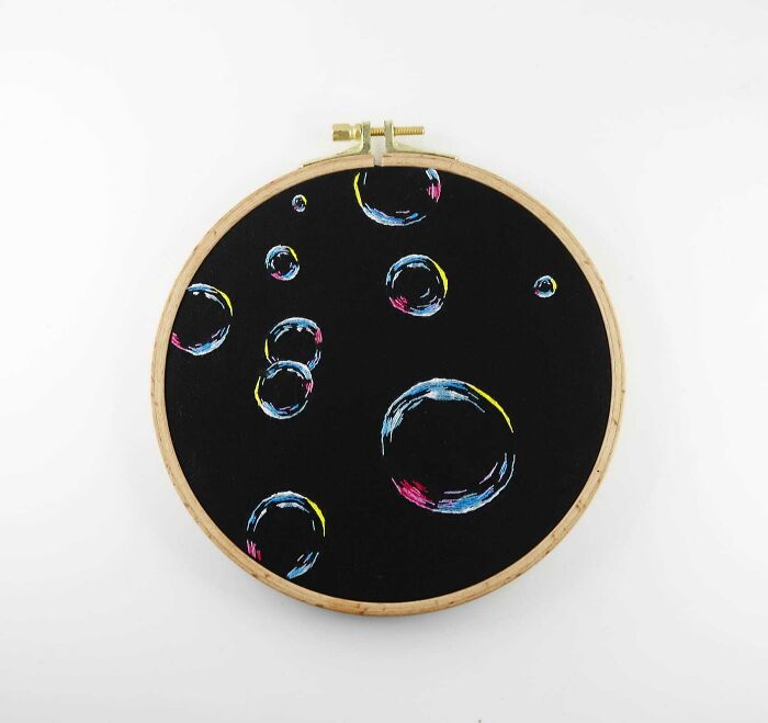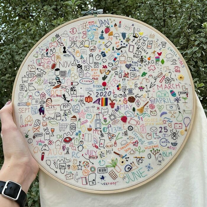 19. „Nie jestem zbyt kreatywna, ale moja terapeutka zasugerowała mi haftowanie, aby pomóc poradzić sobie z moimi zaburzeniami lękowymi. Kiedy zaczęłam ten narysowany wcześniej wzór, nie wiedziałam nawet, jak trzymać igłę. Popełniłam wiele błędów, ale i tak jestem zadowolona!”