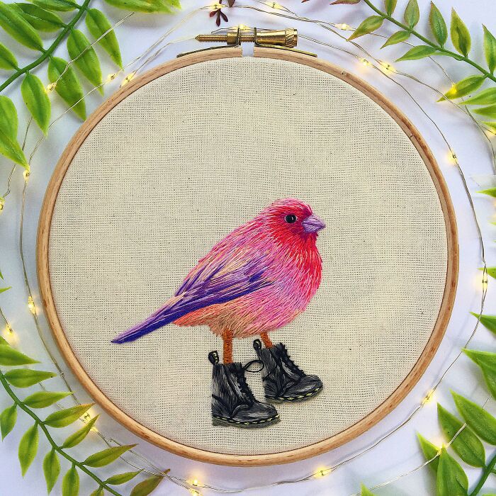 Artyści lubujący się w haftowaniu Charles i Elin podkreślają, że zastosowanie haftu jest nieskończone: dodaj kilka ściegów do swoich butów, ubrań lub toreb, aby totalnie zmienić ich wygląd. A może chcesz udekorować swoje ściany? Nie ma problemu, haft może Ci w tym pomóc. „Haftowanie stało się naszym życiem, ale nie tylko w tym sensie, że jest to nasze wybrane powołanie; to o wiele więcej niż to. Jeśli masz stresujący dzień, weź nitkę i igłę, zrób kilka ściegów, a natychmiast poczujesz, jak ciało i umysł zaczynają się relaksować. W szczęśliwy dzień natomiast sięgnij po nitkę i igłę, zrób kilka ściegów, a twórcze endorfiny zaczną szaleć. Haftowanie to nie tylko starożytne rzemiosło, to także nowoczesna forma sztuki, w której możesz wyrazić siebie”.