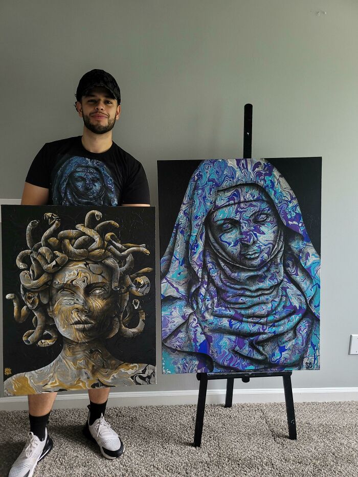 10. „Te dwie prace wykonałem akrylami za pomocą techniki pouringu.”
