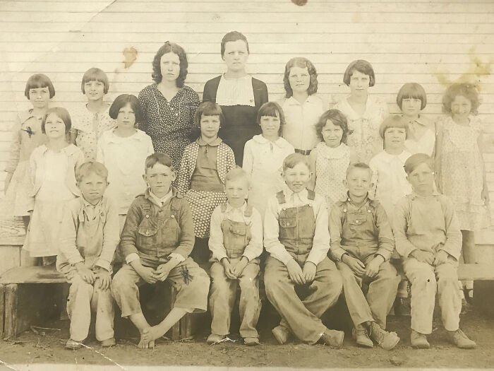 31. „Szkolne zdjęcie mojego dziadka, Teksas, lata 30. Zawsze wstydził się tej fotografii, bo był wówczas zbyt biedny, żeby kupić buty.”