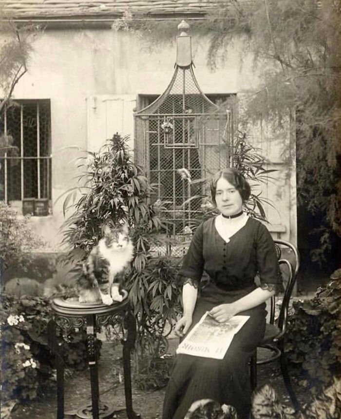 22. Paryżanka z kotem w ogrodzie pełnym konopi, 1910 r.