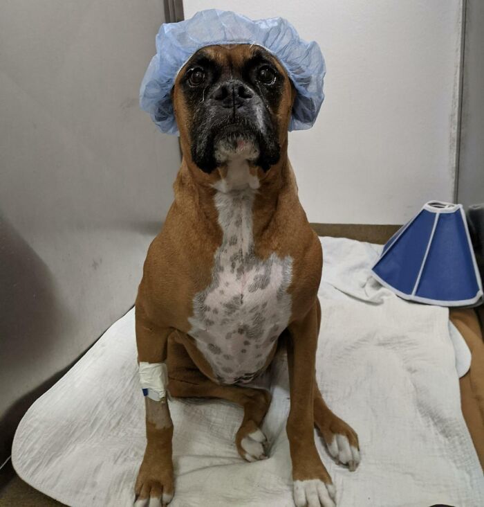 24. „Nasz weterynarz jest bardzo zaprzyjaźniony z moim bokserem. Właśnie przysłał mi to zdjęcie.”