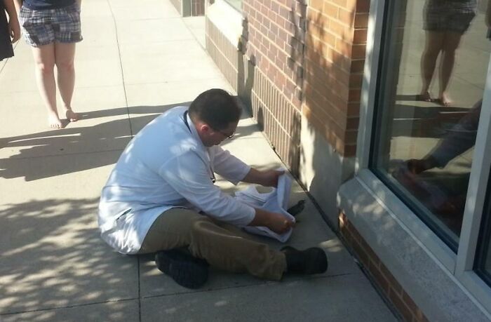 40. „Podczas mojego oczekiwania na przystanku autobusowym ptak uderzył w pobliskie okno i złamał skrzydło. Na szczęście był to gabinet weterynaryjny!”