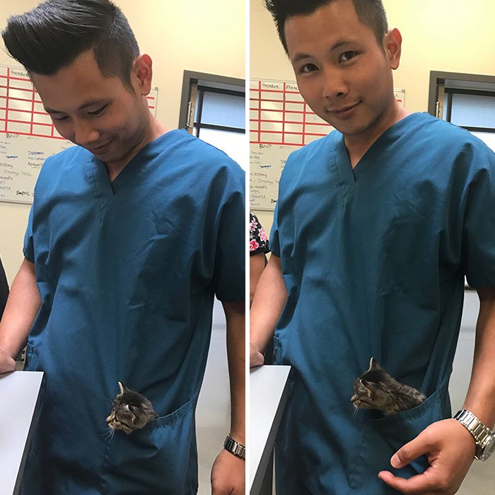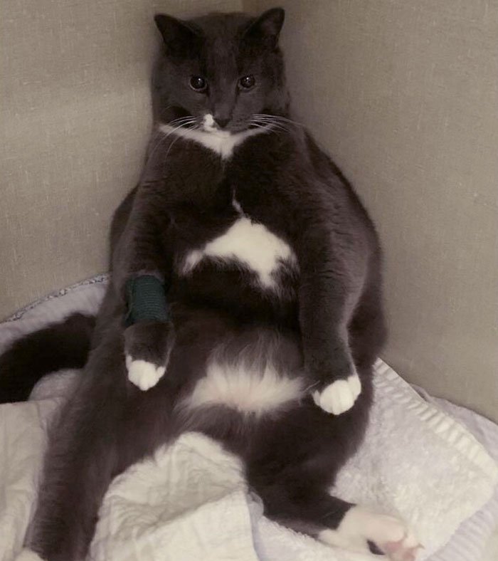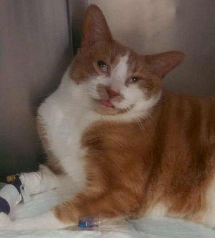 29. „Weterynarz zadzwonił i zapytał, czy może zrobić i użyć zdjęcia naszego kota do celów marketingowych. Powiedziałam, że tak… a potem wysłali to zdjęcie.”
