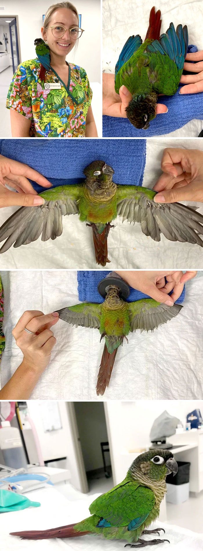 37. Ta pani weterynarz pomogła 12-tygodniowej papudze ponownie odbyć lot po tym, jak poważne uszkodzenie skrzydeł uniemożliwiło jej latanie.