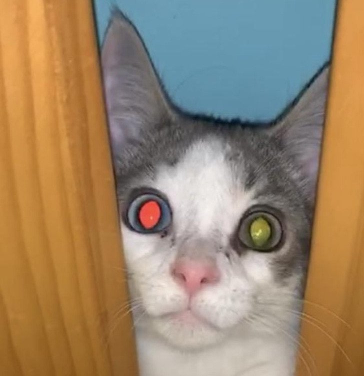 2. Po skierowaniu flesza na oczy tego kota przybrały one dwa różne kolory.