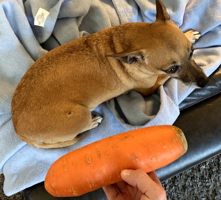 6. Czy to marchewka jest nieprzeciętnie duża, czy ten pies taki mały?