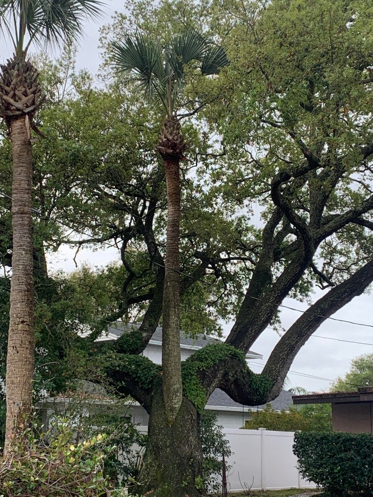 2. Spodziewalibyśmy się naprawdę wszystkiego, ale nie palmy wyrastającej z innego drzewa!