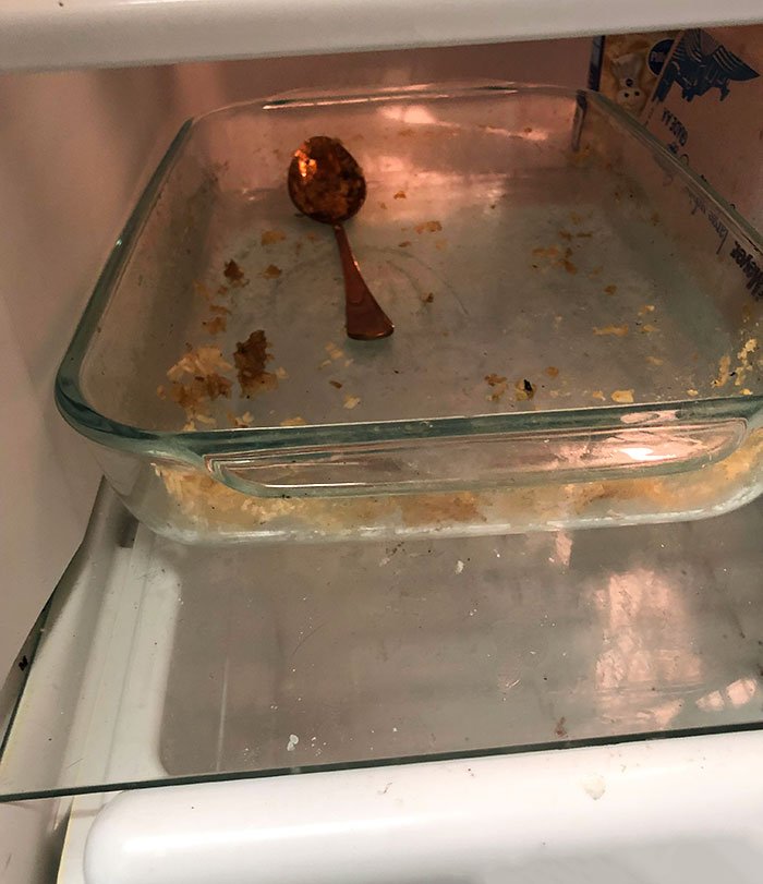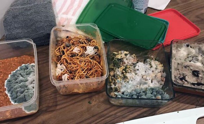 5. „Oto talerz mojego współlokatora. Użyty miesiąc temu. Nadal jest w lodówce.”