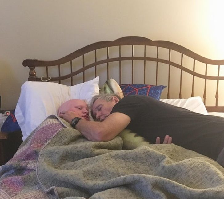 10. W zdrowiu i w chorobie – kochający tato opiekuje się swoim synem.