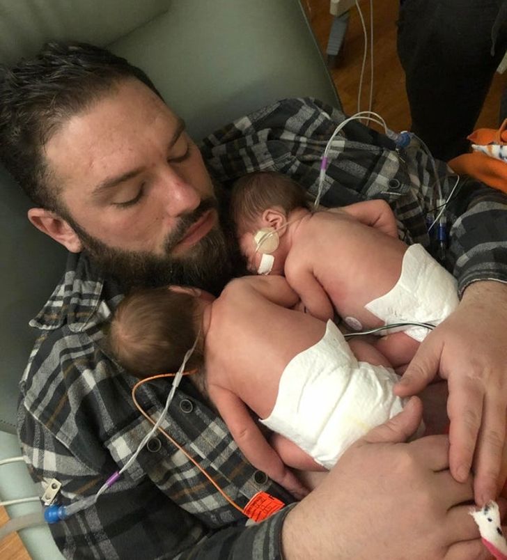 3. „Patrząc na mojego męża trzymającego w ramionach nasze przedwcześnie urodzone bliźniaki, nie mam wątpliwości, że będzie wspaniałym tatą.”