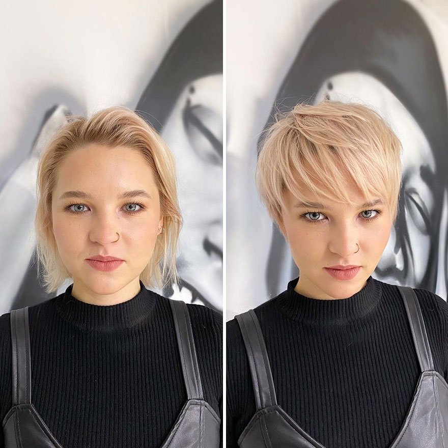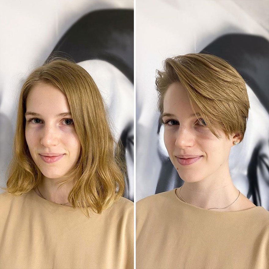 Przygotowane przez Kristinę zdjęcia porównawcze przed i po strzyżeniu dobitnie pokazują, że nowa fryzura w ciągu kilku godzin może zmienić kogoś w zupełnie inną osobę. Jeśli więc zastanawiacie się nad podobnym ostrym cięciem, mamy dla Was listę najlepszych prac kobiety, które z pewnością pomogą Wam zdecydować, czy tego typu transformacja jest dobrym pomysłem.
