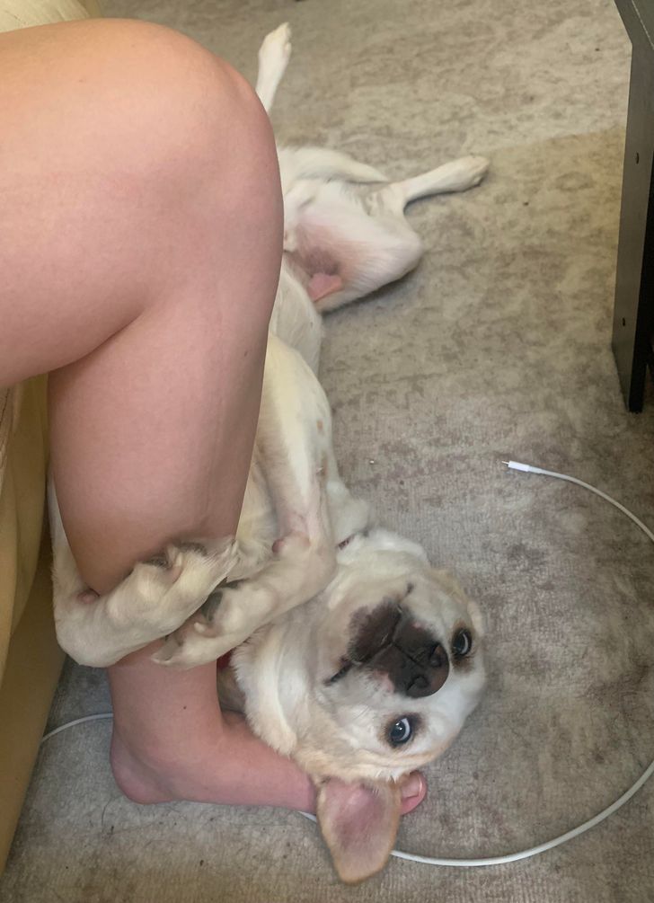 16. Ten pies chyba uważa, że nadal jest szczeniakiem!