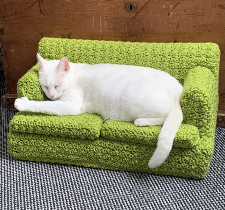 4. Kocia kanapa zrobiona na szydełku.