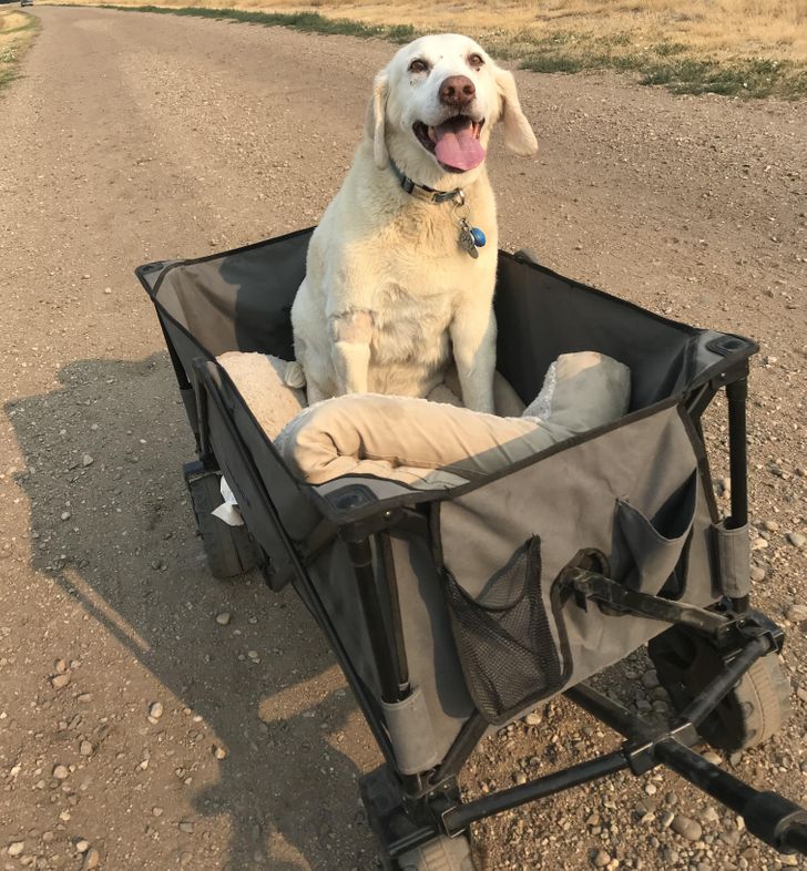 7. Chore stawy tego psa nie pozwalają mu na długie spacery, ale na szczęście jego właściciele znaleźli w tej kwestii doskonałe rozwiązanie!
